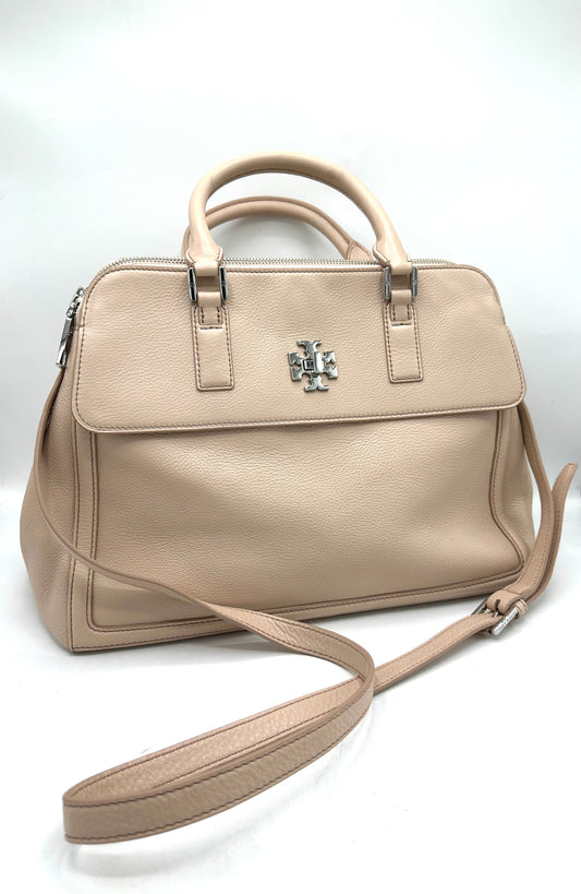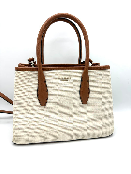 Kate Spade Small Eva Satchel – Cream Canvas with Tan Leather Trim