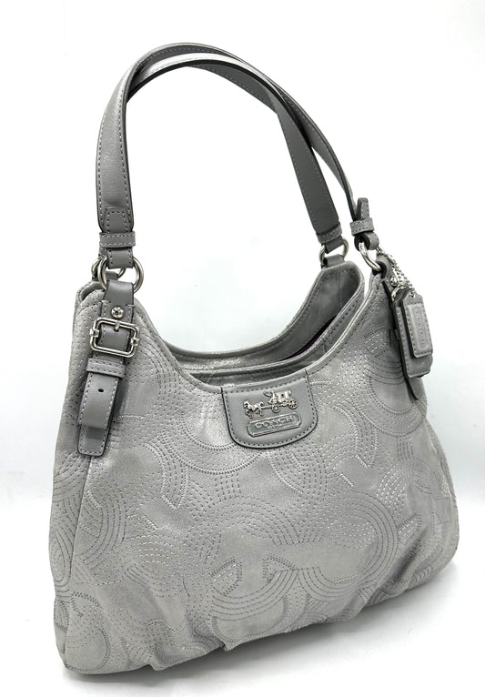 Coach Madison Maggie Stitched Metallic Shoulder Bag – Silver / Grey
