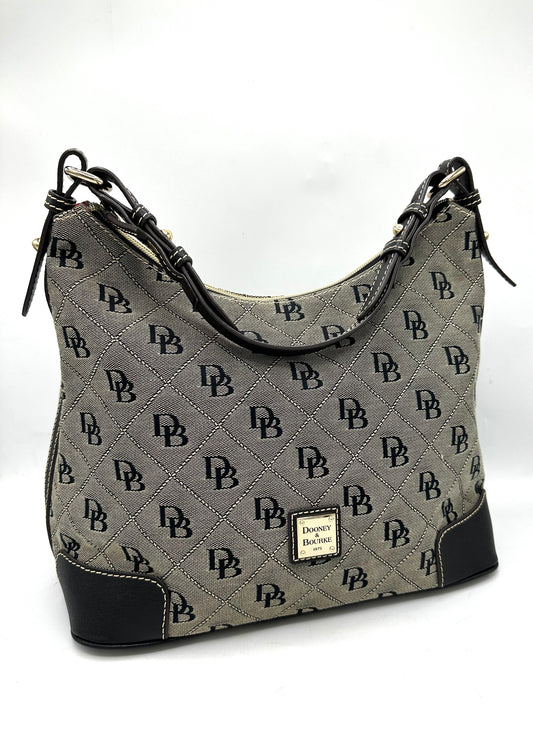 Dooney & Bourke Signature Erica Hobo – Grey with Black Monogram