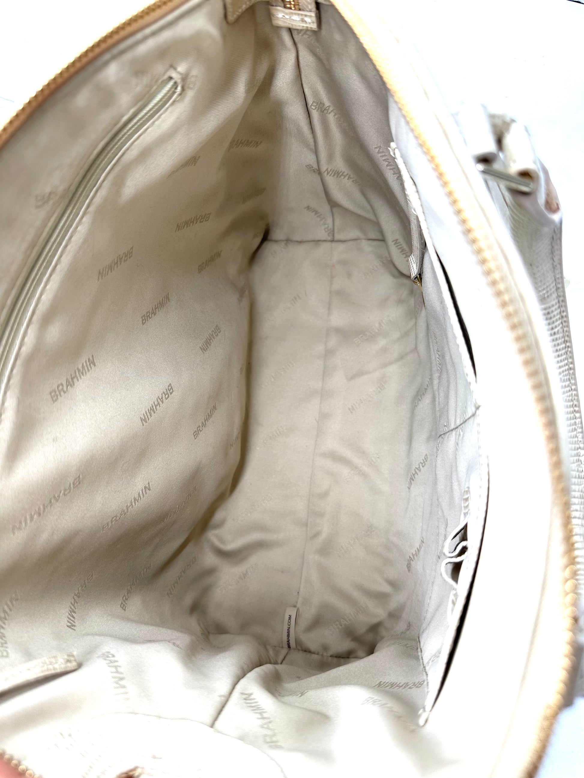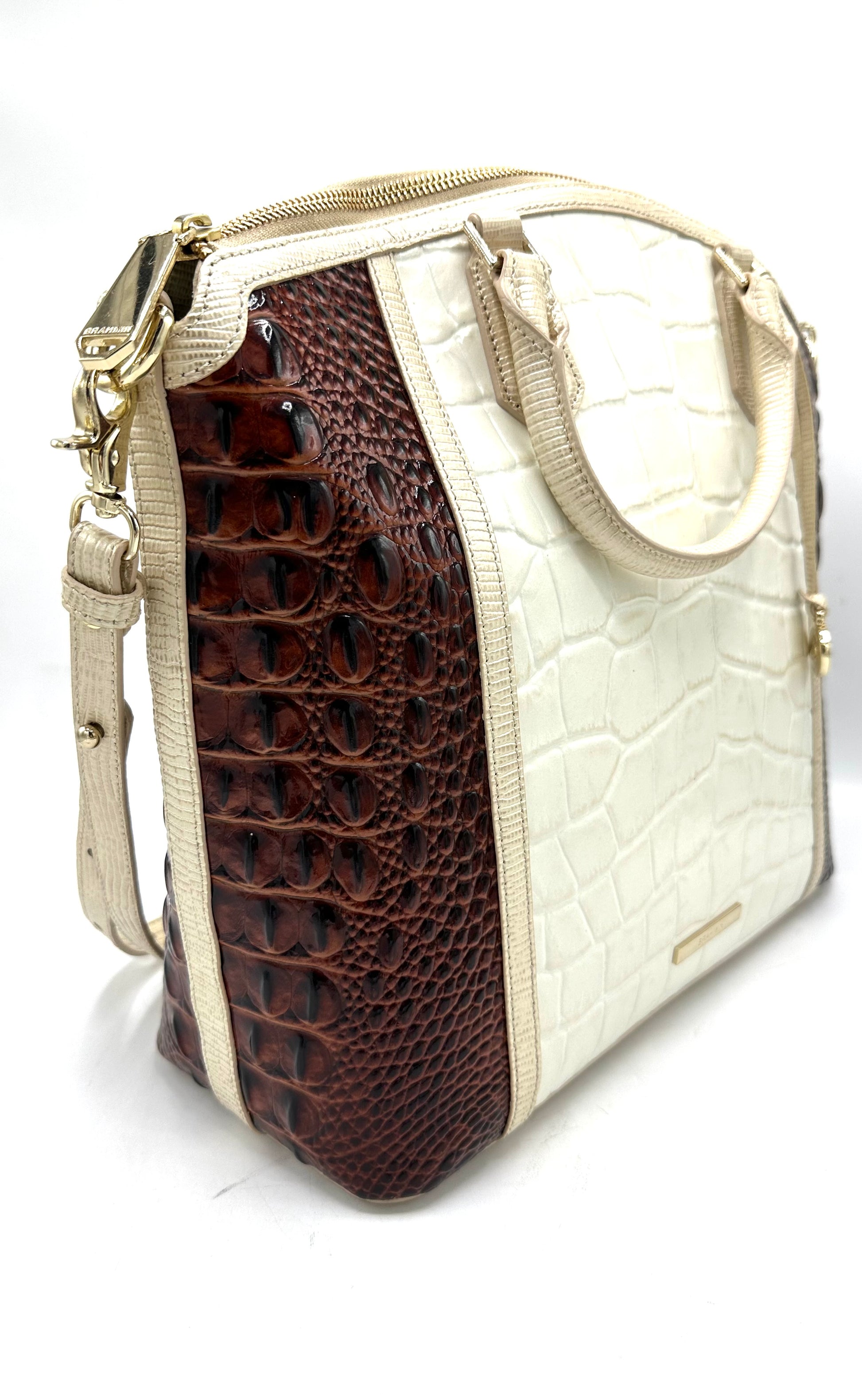 Brahmin Large Duxbury Satchel – Brown & White Crocodile-Embossed Leather