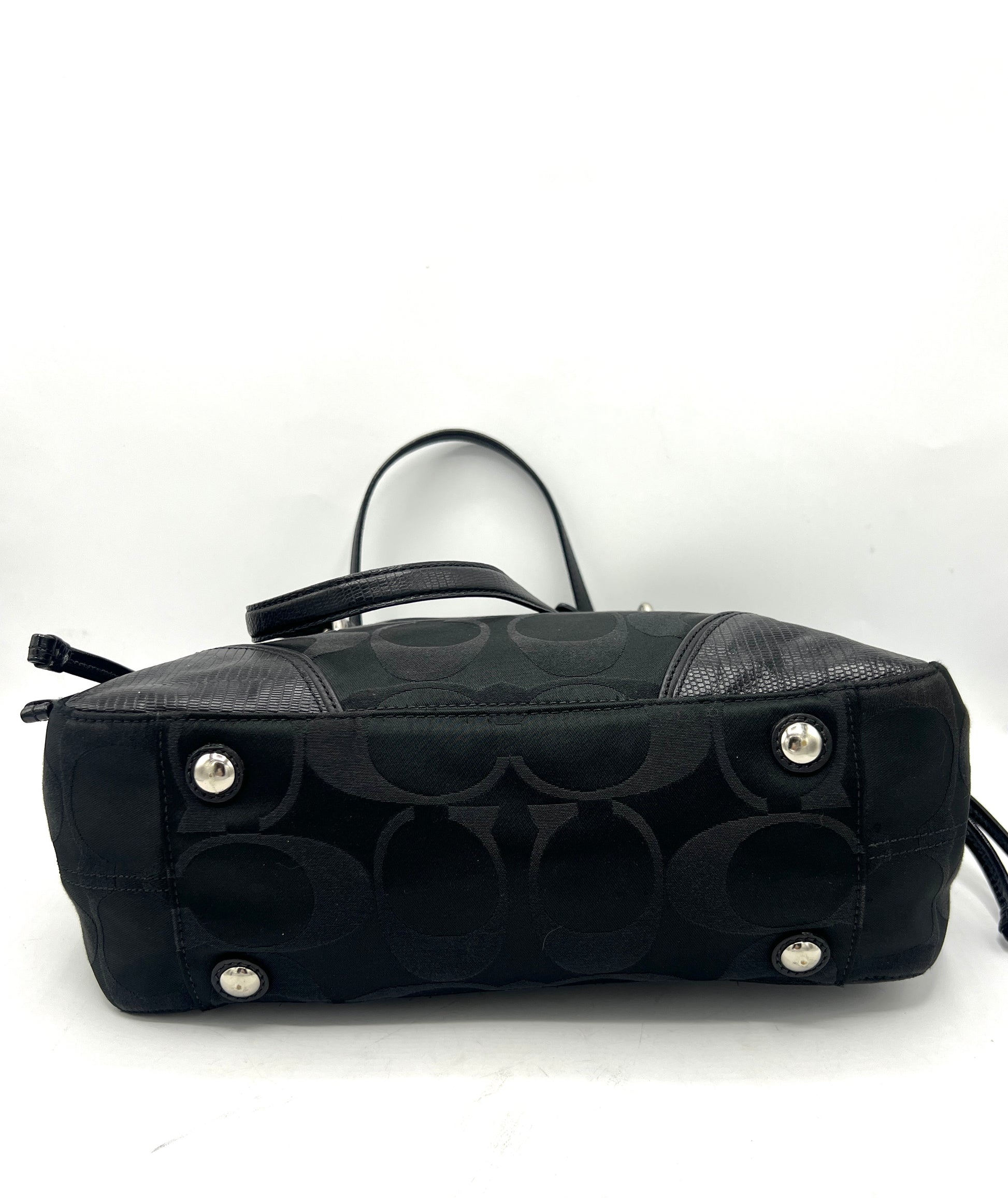 Coach Colette Signature Satchel – Black Jacquard with Silver Hardware