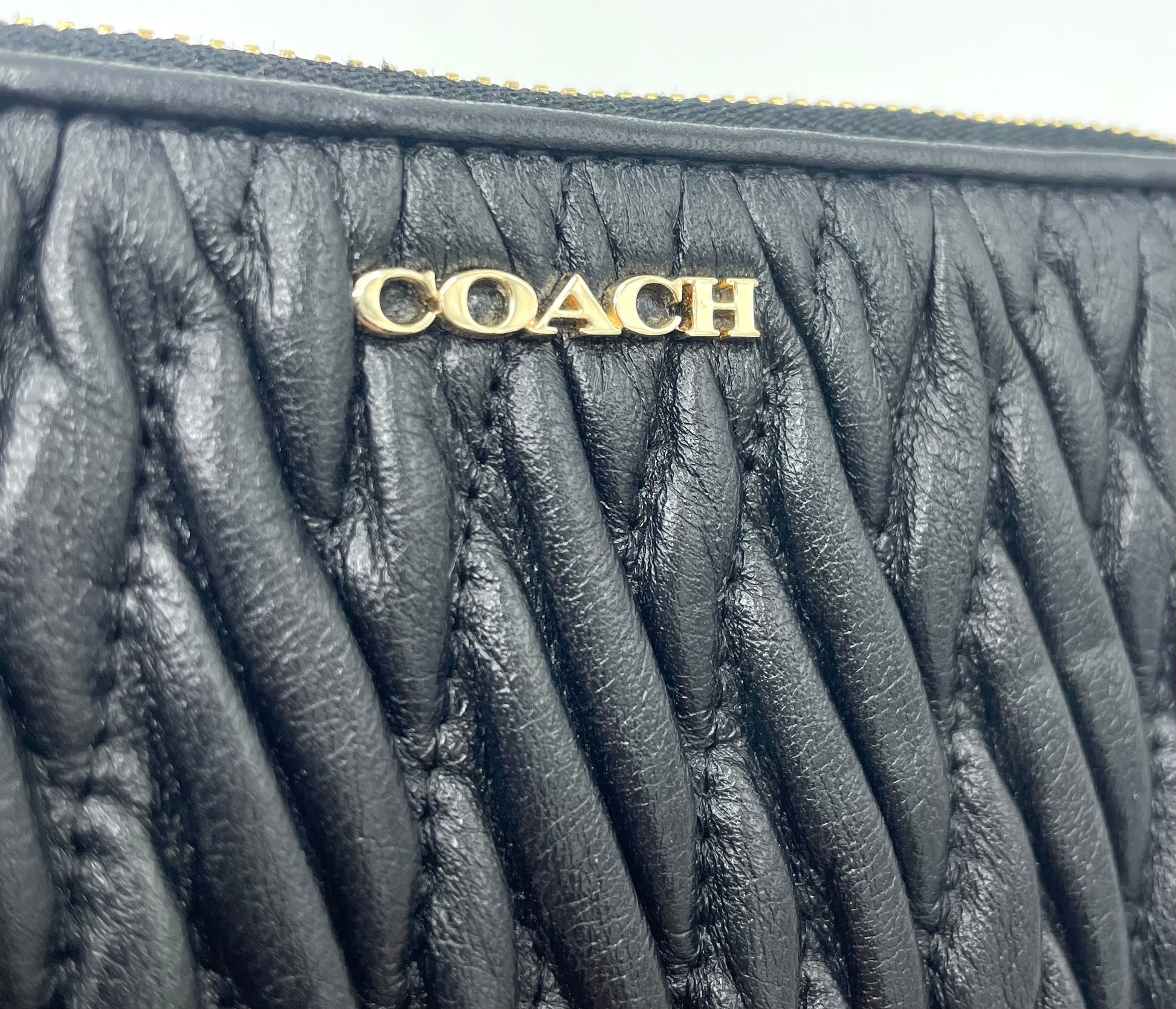 Elevate your everyday essentials with this authentic Coach Gathered Twist Leather Small Wallet. Crafted from luxurious pebbled leather with elegant twist detailing, it’s compact yet surprisingly spacious—with room for cards, cash, and a secure coin pocket. Sleek, timeless, and perfect for slipping into your favorite bag. Gently used and in excellent condition. A chic, functional piece for any Coach lover!