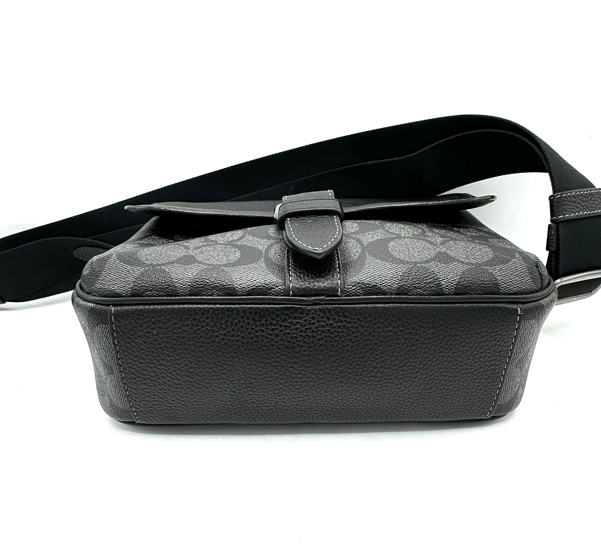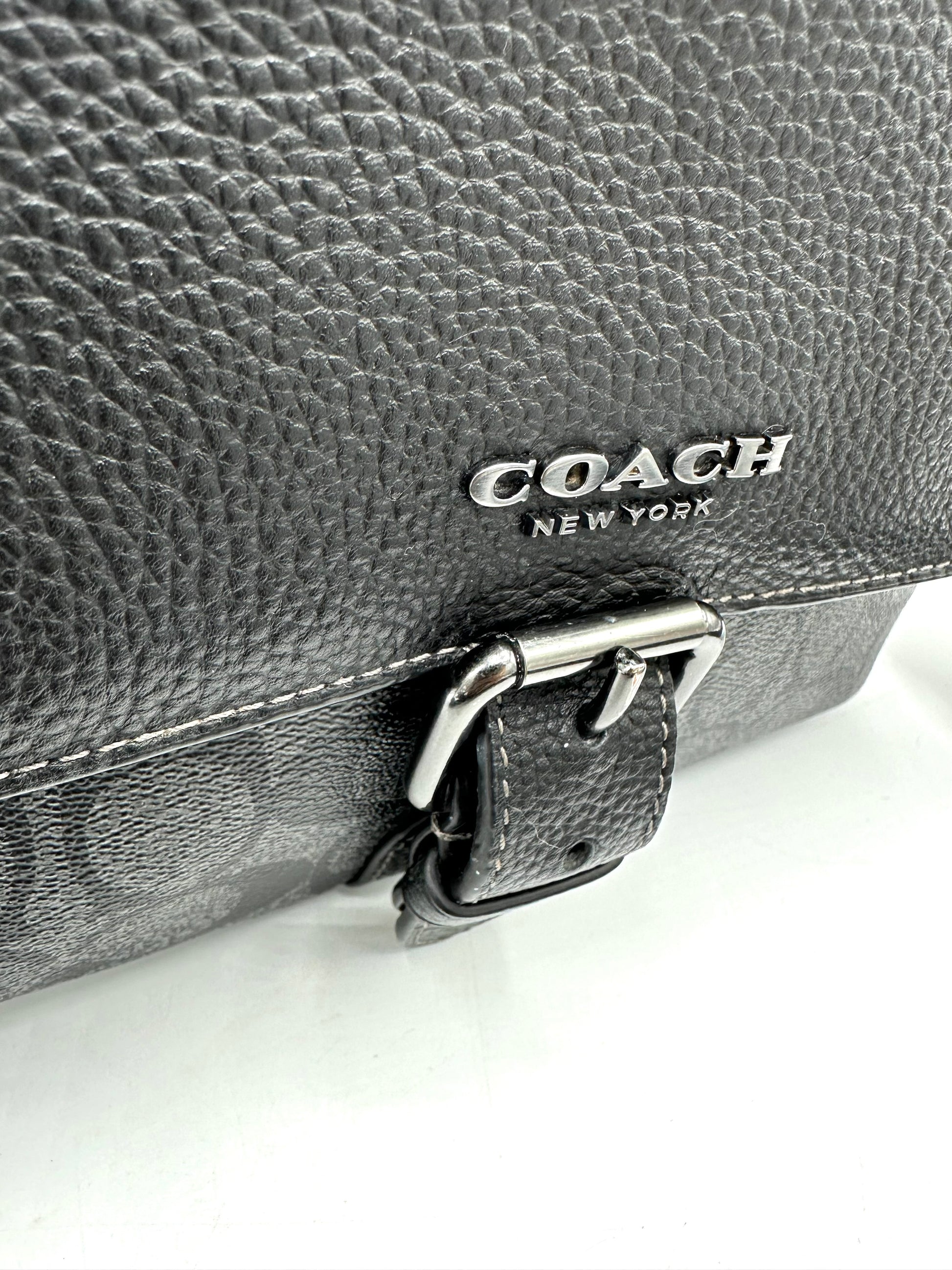 Coach Hudson Crossbody – Black Pebbled Leather & Grey Signature Coated Canvas