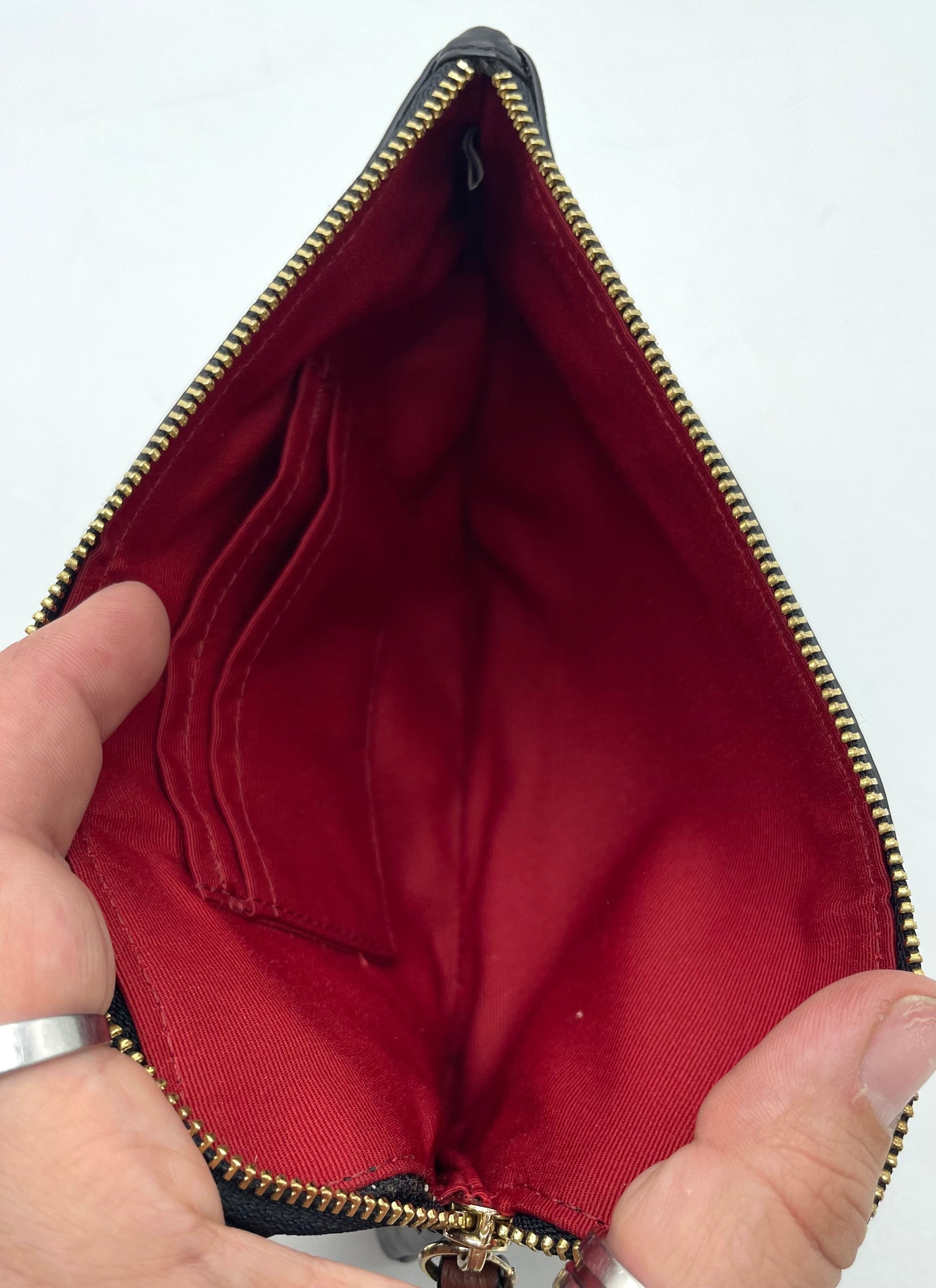 Stylish and functional, this authentic Coach Large Corner Zip Wristlet features the iconic Horse and Carriage motif on signature coated canvas with refined leather trim. Fits smartphones, cards, and essentials with ease—ideal for on-the-go use or as a chic bag insert. Gently used and in excellent condition. A versatile piece that blends classic Coach heritage with everyday practicality!