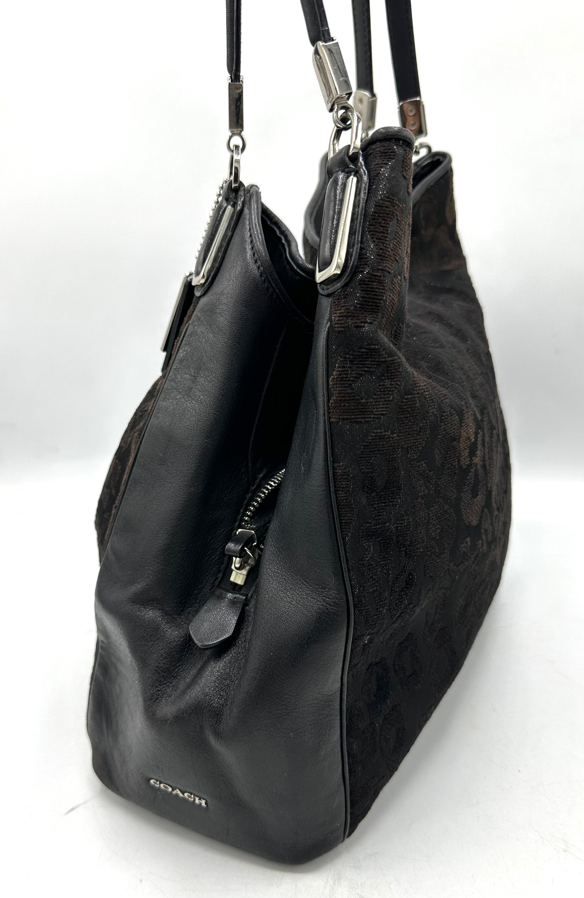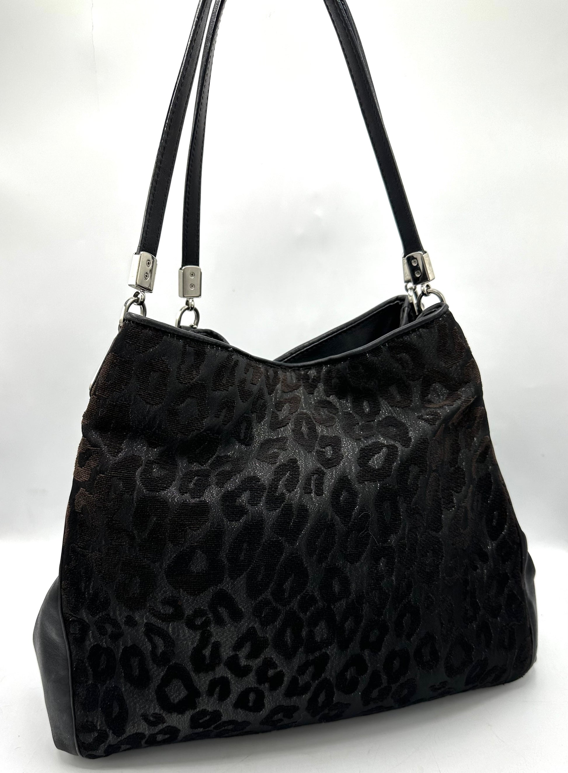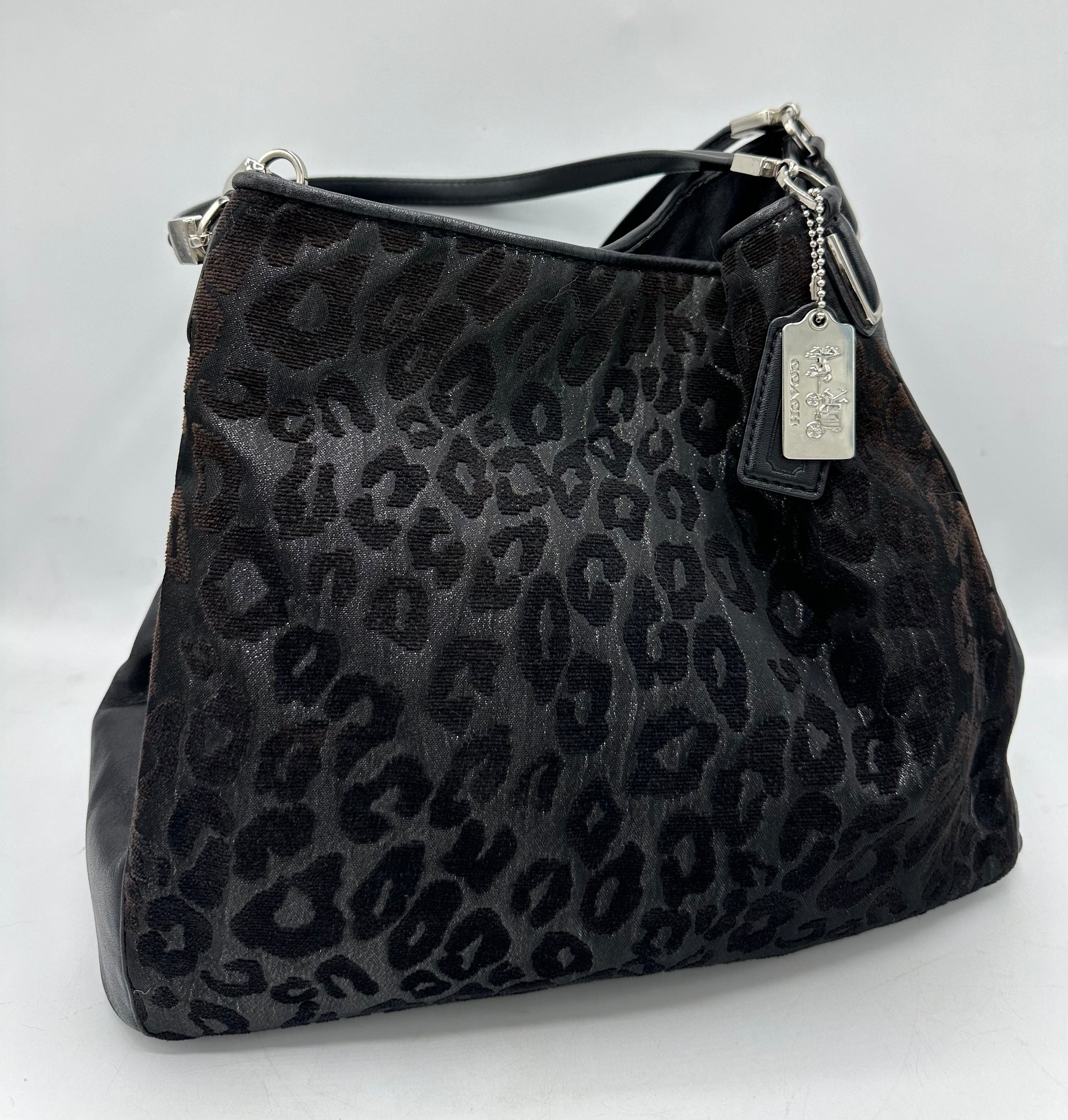 Bold, textured, and stood out in the Coach Madison line, the Phoebe in chenille ocelot fabric delivers both attitude and structure. The pull of the print meets sleek hardware and a roomy multi-compartment design for real-function style.