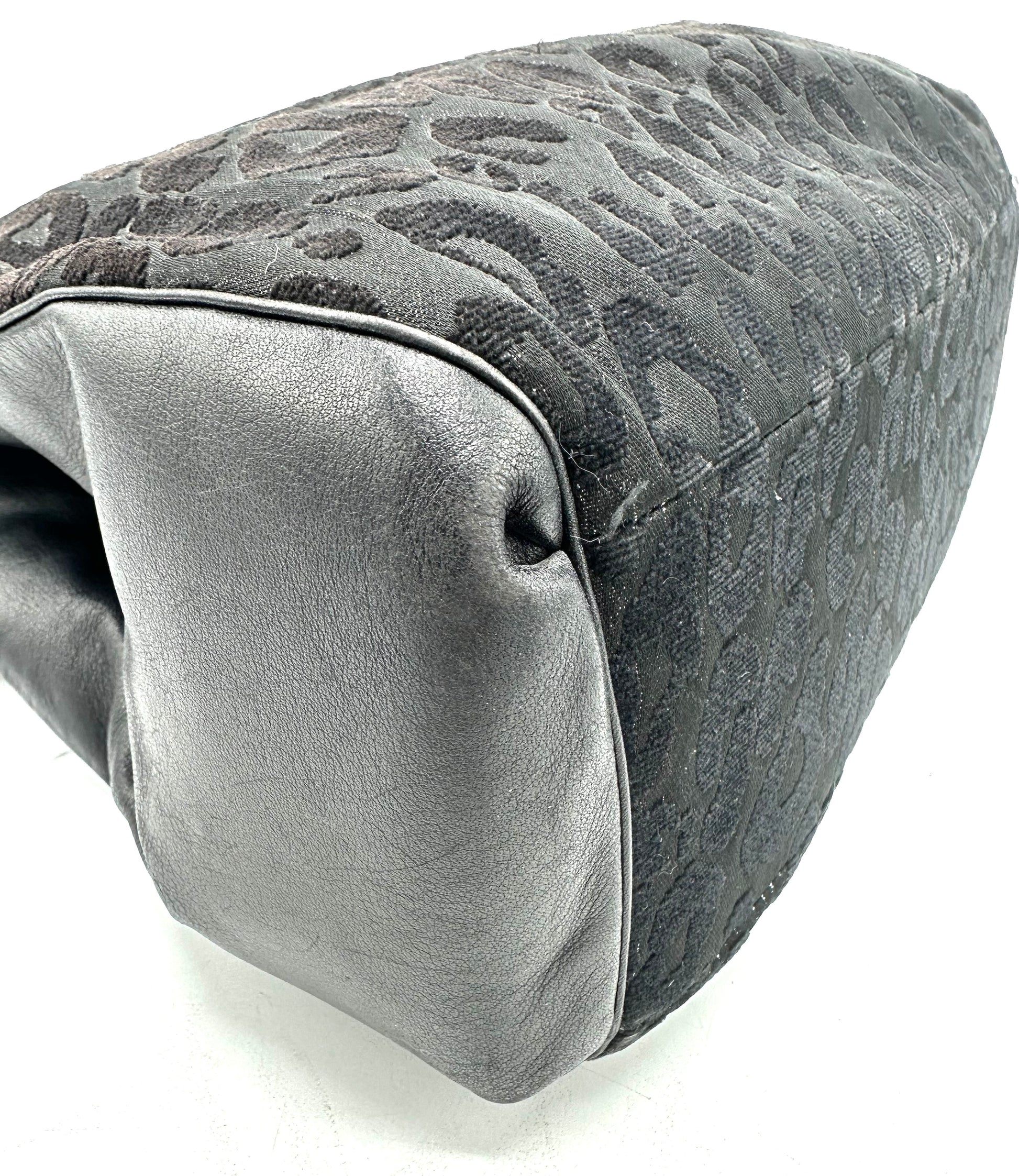 Color: Silver/Black Chenille Ocelot with Black Leather Trim