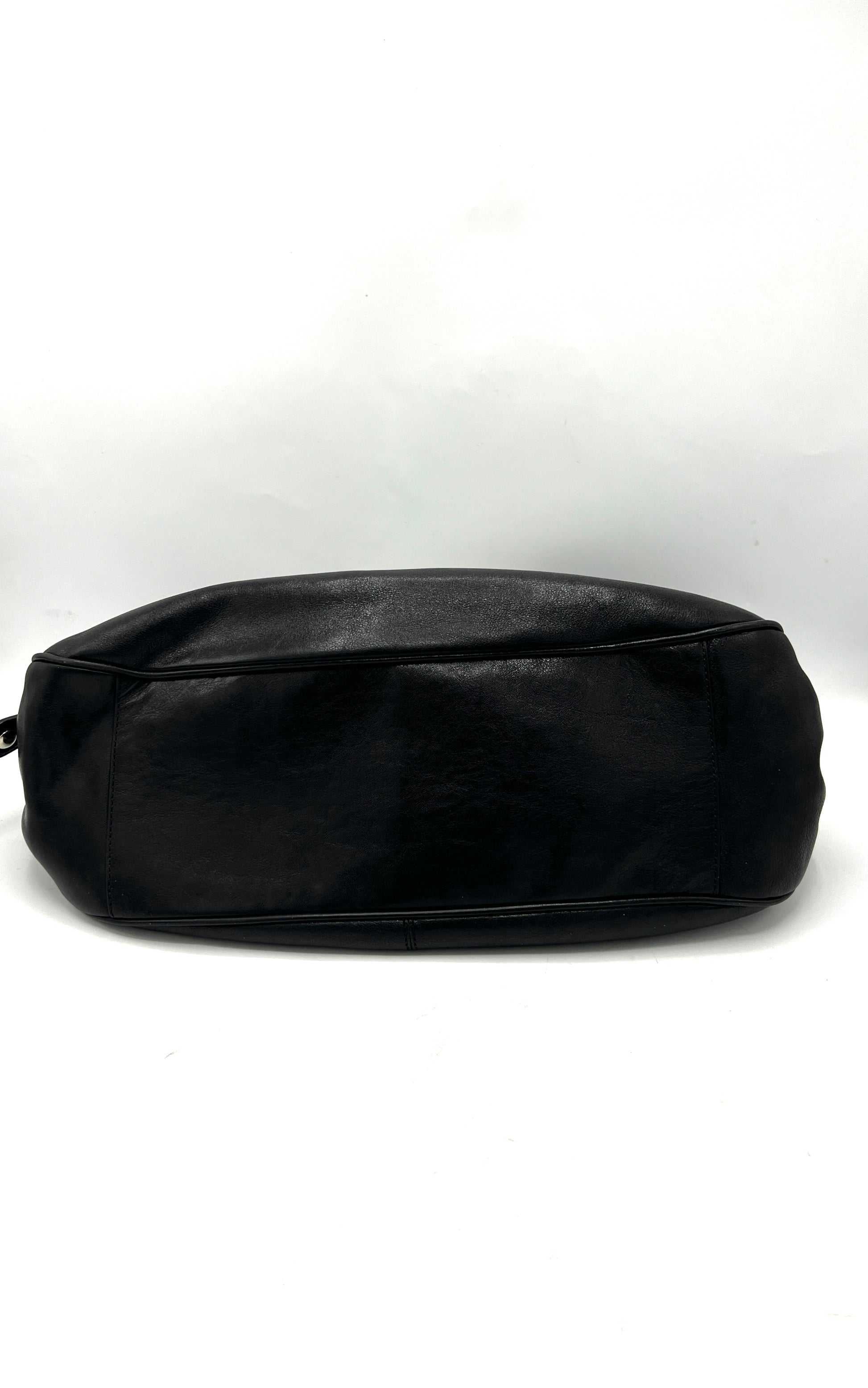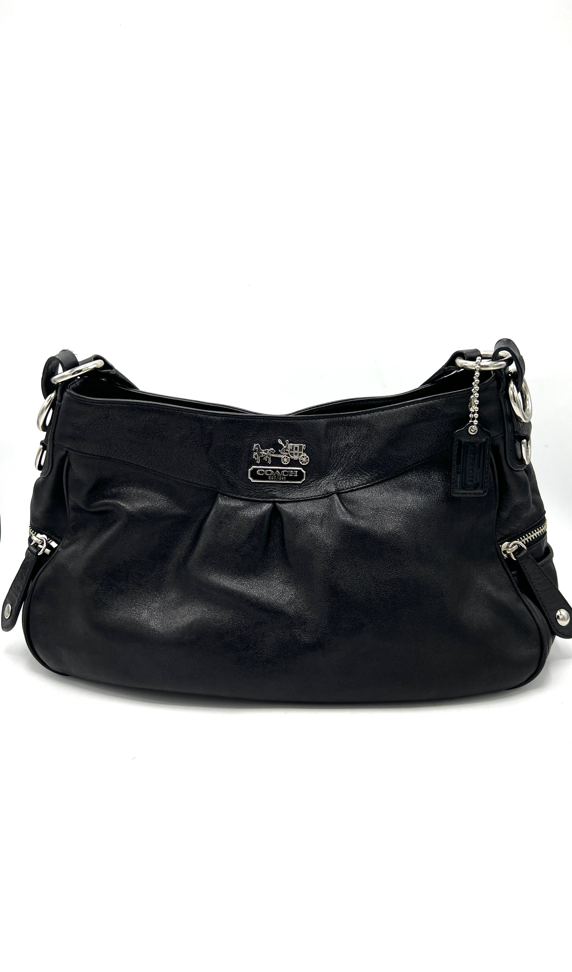 This Coach Madison satchel blends timeless black leather with sleek silver hardware, making it an endlessly versatile piece that transitions from day to night with ease.