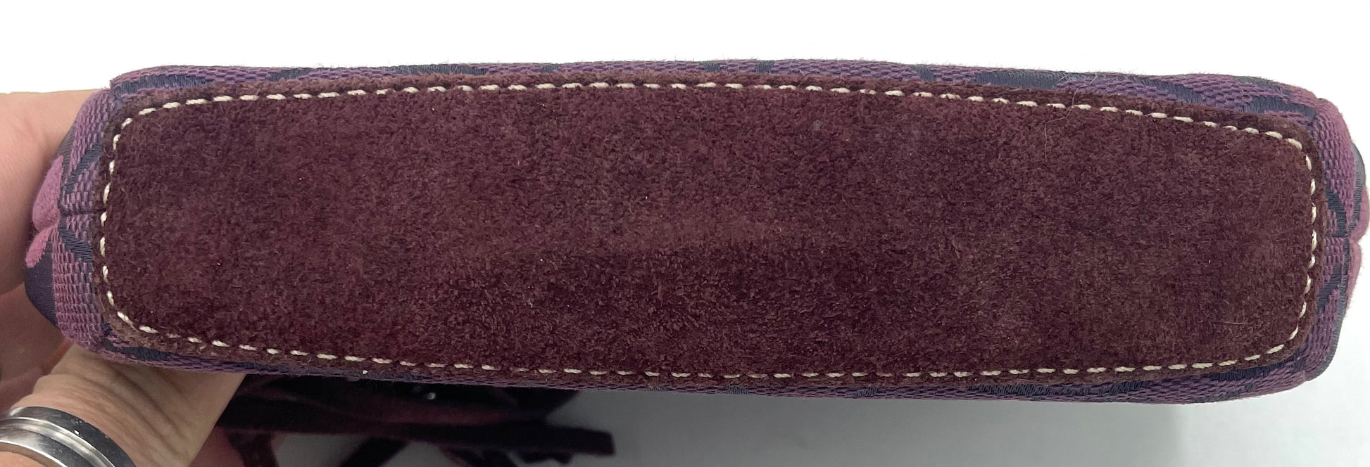 Chic and timeless, this Coach Vintage Signature C Capacity Wristlet blends classic style with everyday function. Crafted in Coach’s iconic “C” monogram canvas with leather trim, it features a spacious interior perfect for essentials like cards, keys, and lipstick. The detachable wrist strap adds versatility—carry it solo or toss it in your tote. Gently used and in excellent condition, it’s the perfect grab-and-go piece for any Coach collector or stylish minimalist.