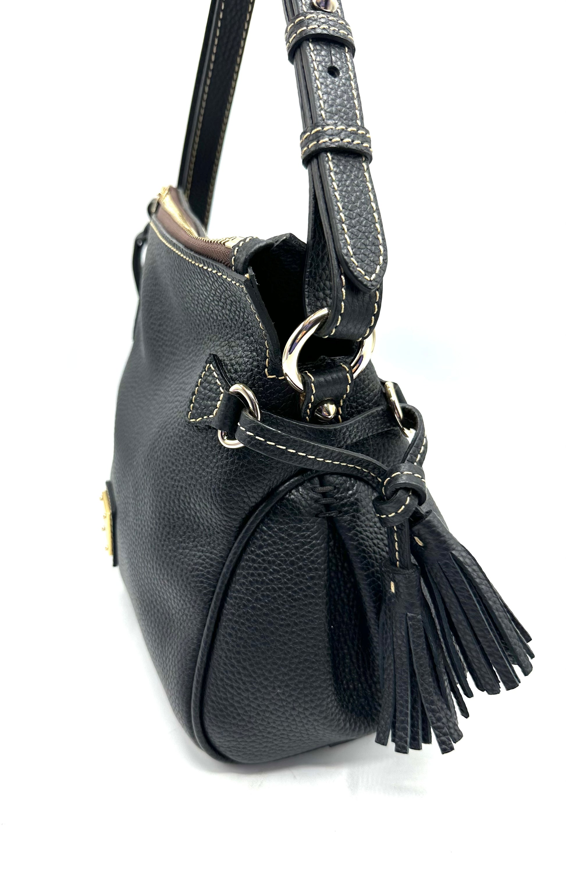 Dooney & Bourke Pebble Grain Tassel Shoulder Bag – Black Pebbled Leather