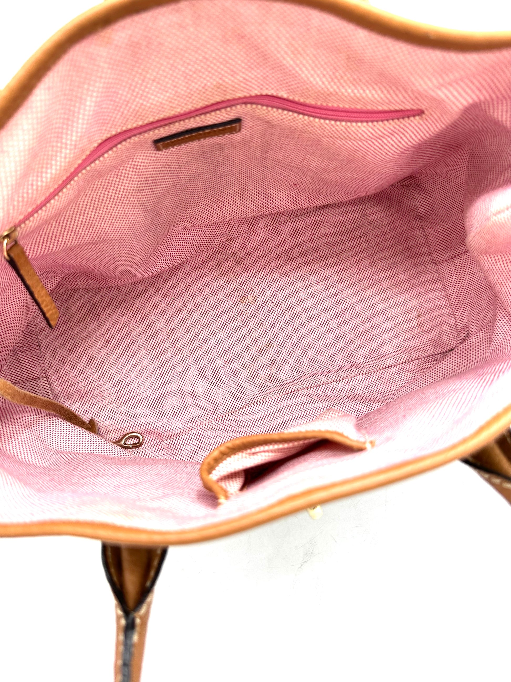 A true classic from Dooney’s heritage era, this vintage tote combines the brand’s signature khaki canvas with rich brown leather trim and that iconic duck logo patch. Effortlessly timeless and built to last, it’s the kind of bag that only gets better with age.