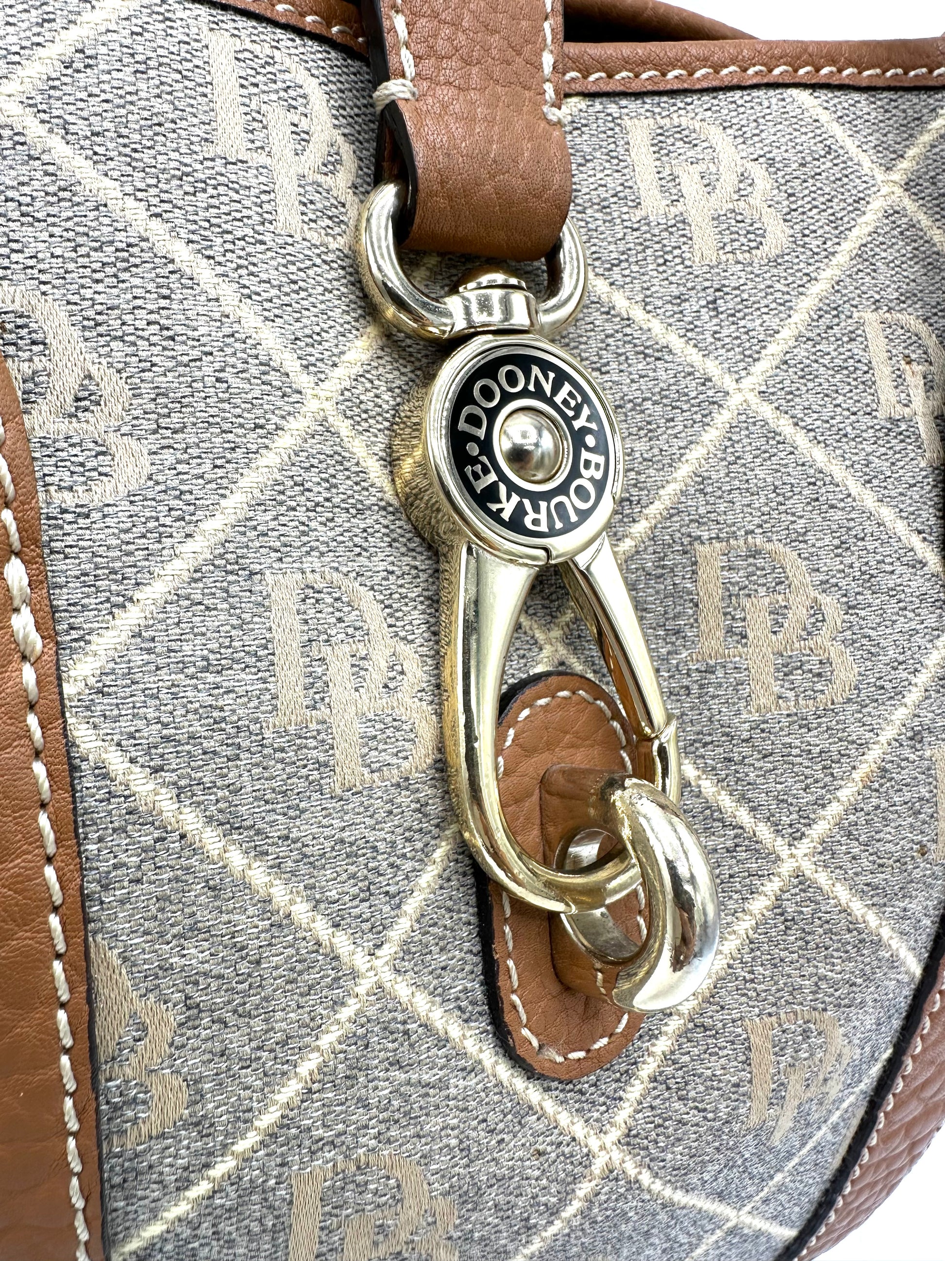 Dooney & Bourke Vintage Tote – Khaki Canvas with Leather Trim and Duck Logo