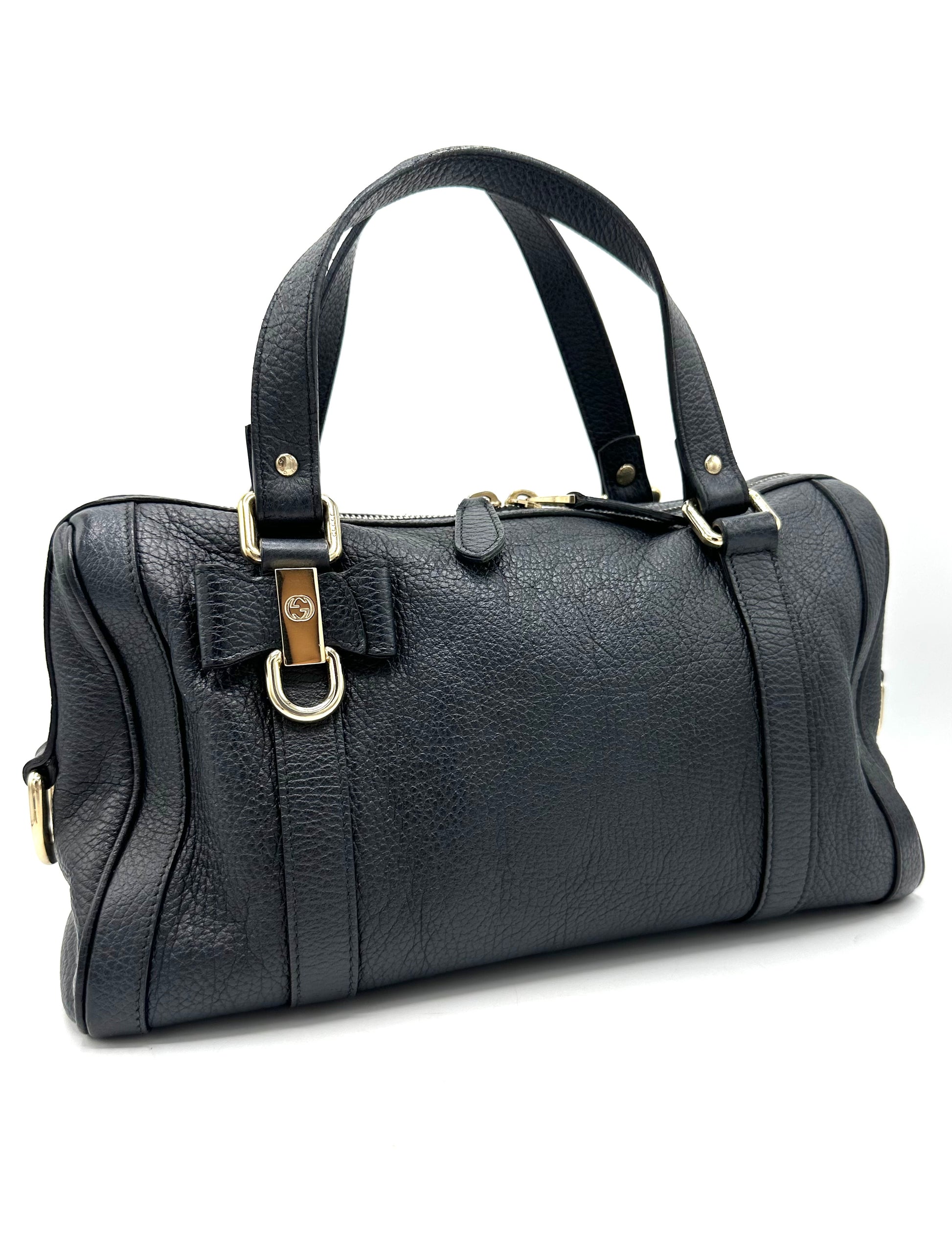 Gucci Medium Duchessa Boston Bag – Dark Blue Grey Leather with Leather Bow