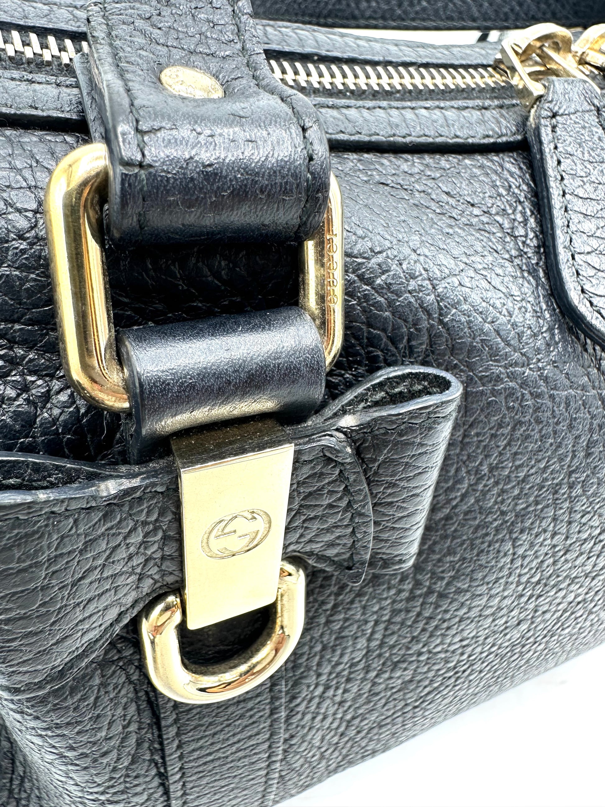 Sleek Italian craftsmanship meets everyday ease in this Gucci Boston silhouette. The dark grey leather is timeless and versatile, while the signature leather bow adds polish and personality — a bag that effortlessly elevates from errands to evening.
