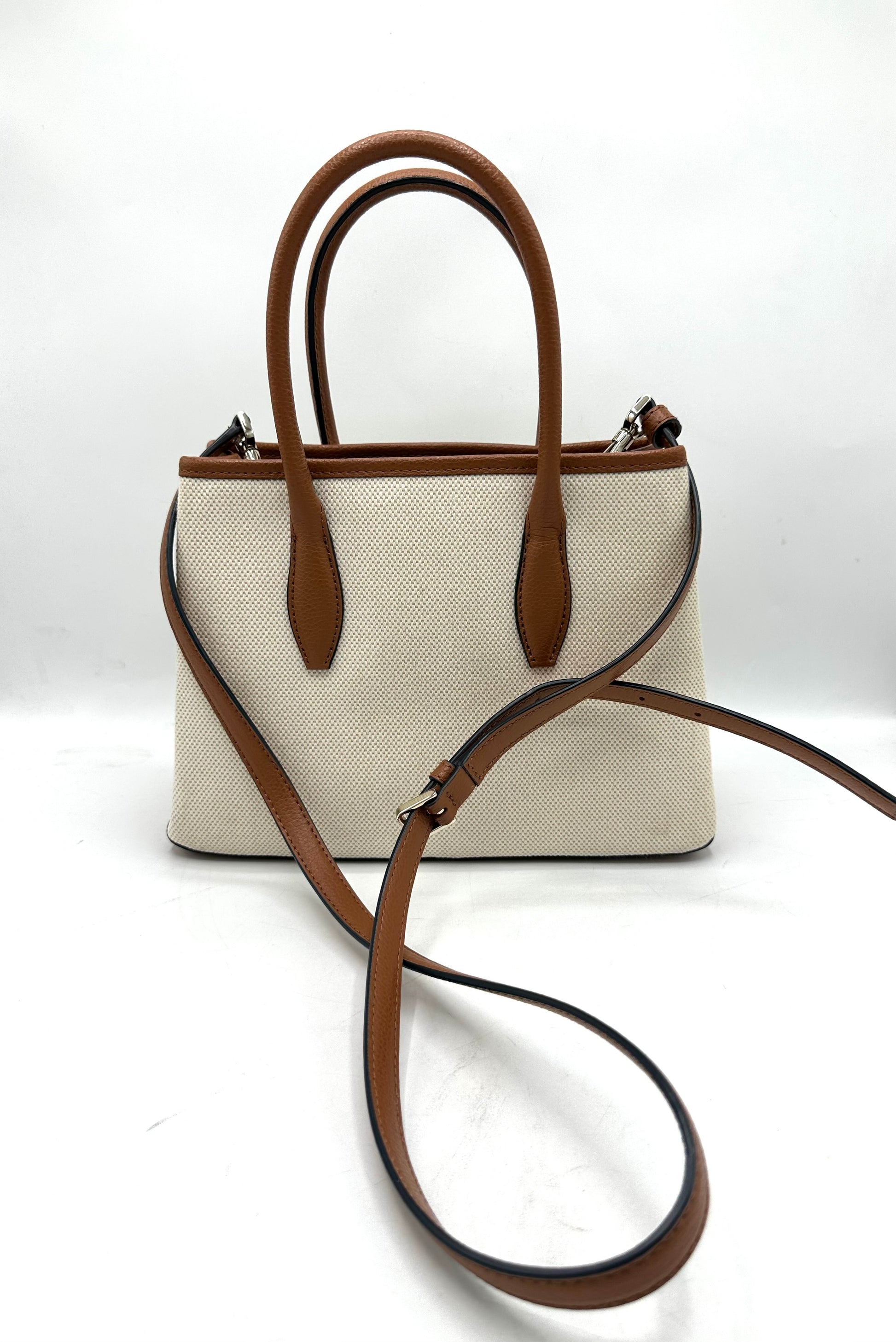 Kate Spade Small Eva Satchel – Cream Canvas with Tan Leather Trim