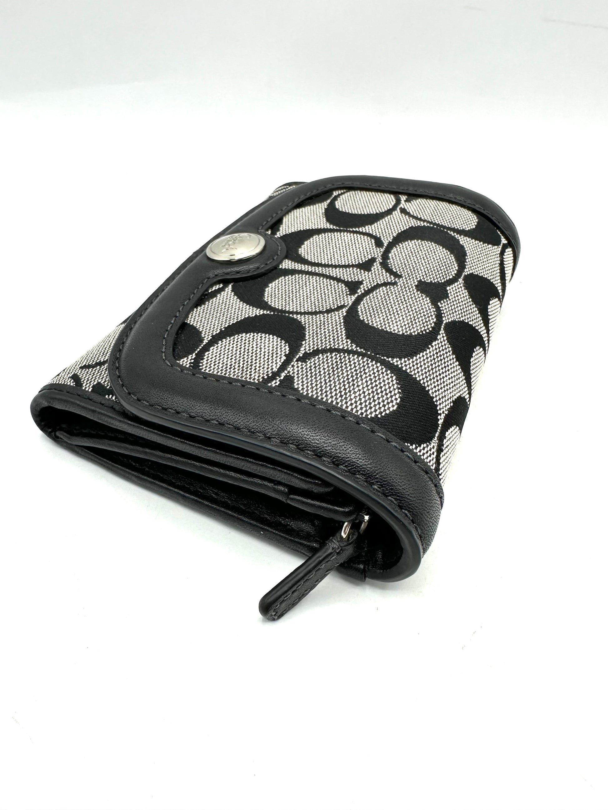 Coach Classic Tri-Fold Small Wallet – Black/Gray Signature C Canvas
