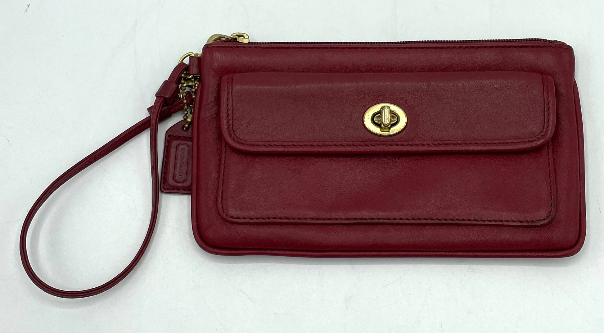 Elevate your style with this Vintage Coach Legacy Turnlock Wristlet, crafted in rich, glove-tanned leather. Featuring the iconic turnlock closure and timeless design, this wristlet blends classic elegance with everyday practicality. Perfectly sized for essentials, it’s ideal for day-to-night use. Gently loved and beautifully preserved, it’s a must-have for collectors and fashion enthusiasts alike. Add a touch of heritage charm to your wardrobe with this authentic Coach piece.